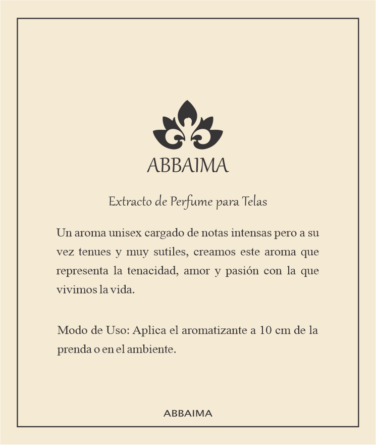 Un aroma unisex cargado de notas intensas pero a su vez tenues y muy sutiles, creamos este aroma que representa la tenacidad, amor y pasión con la que vivimos la vida.