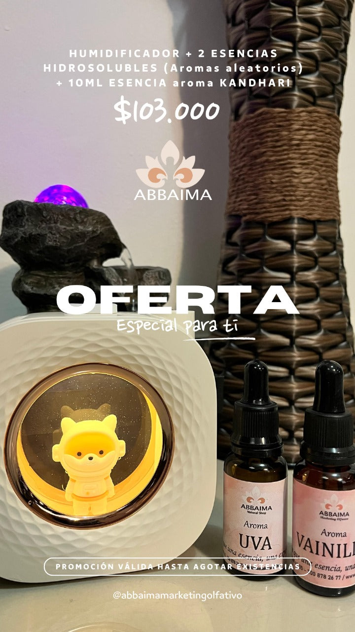 Humidificador con filtro + 2 Esencias hidrosolubles de 20 ml cada una AROMA ALEATORIO + Esencia Kandhari Hidrosoluble 10 ml