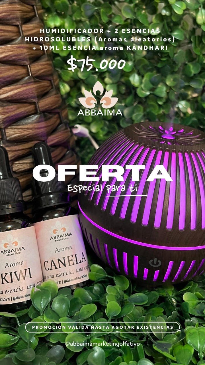 Humidificador con filtro + 2 Esencias hidrosolubles de 20 ml cada una AROMA ALEATORIO + Esencia Kandhari Hidrosoluble 10 ml