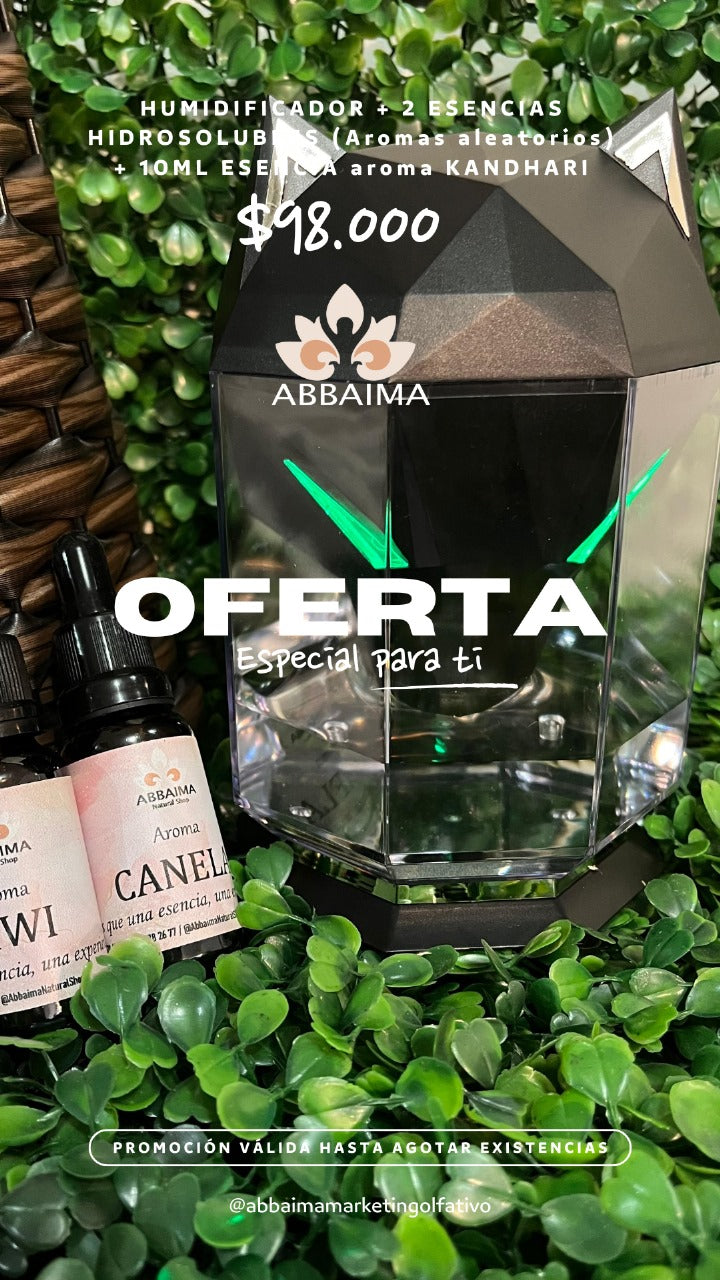Humidificador con filtro + 2 Esencias hidrosolubles de 20 ml cada una AROMA ALEATORIO + Esencia Kandhari Hidrosoluble 10 ml