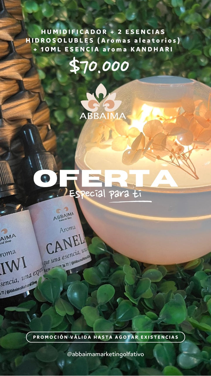 Humidificador con filtro + 2 Esencias hidrosolubles de 20 ml cada una AROMA ALEATORIO + Esencia Kandhari Hidrosoluble 10 ml