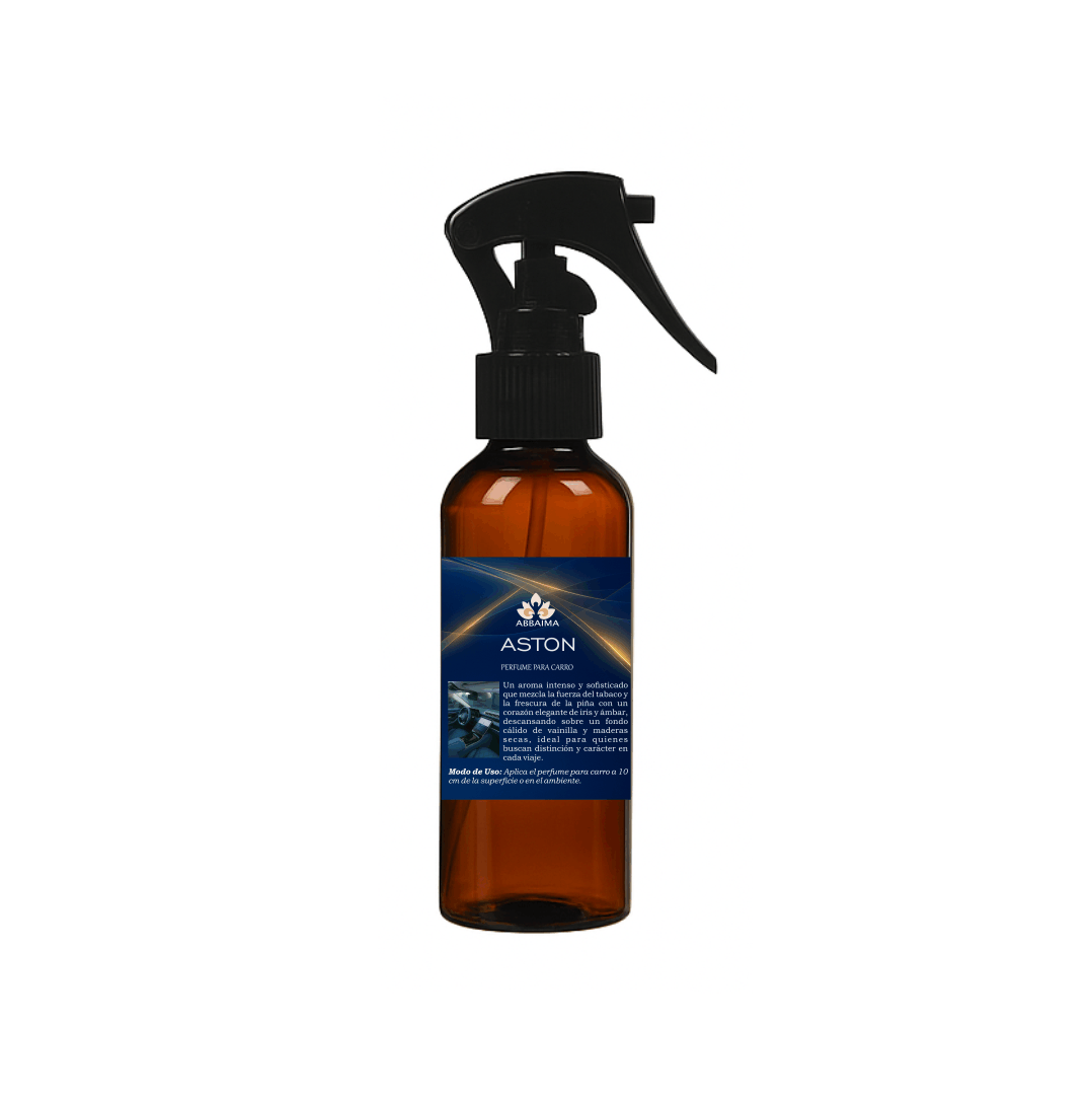 Nuestro Perfume para carro viene en spray. Lo puedes aplicar a 10 cm del techo, cojinería y tapetes.